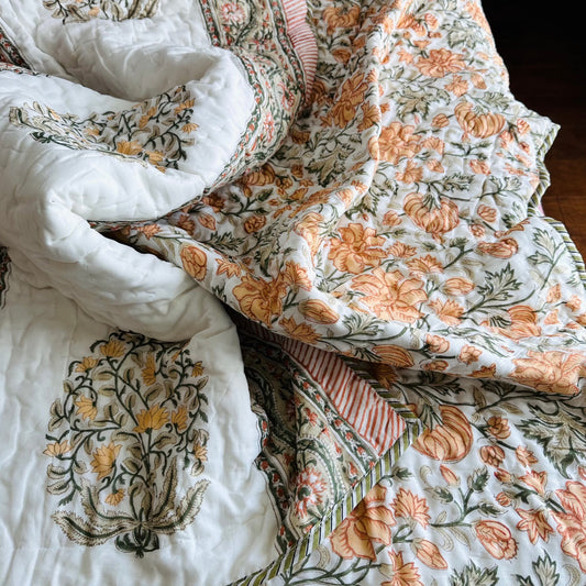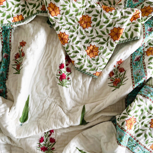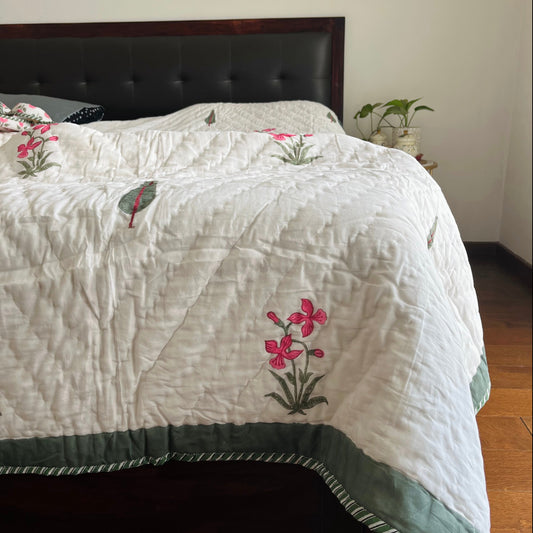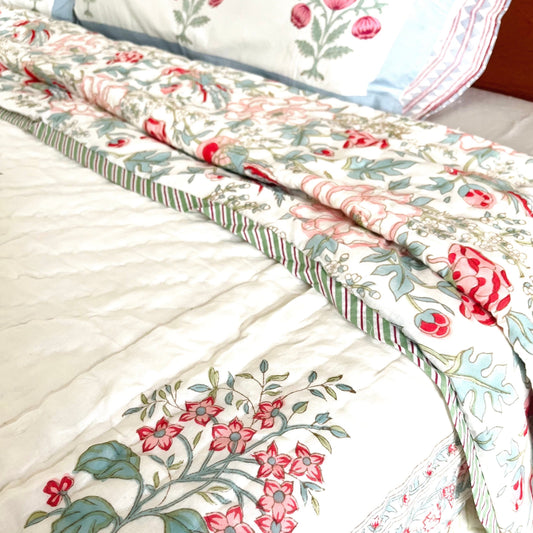 Garden Blooms Reversible Single Bed Cotton Quilt