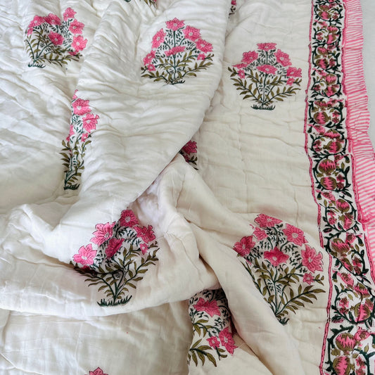Roseate Reversible Single Bed Cotton Quilt