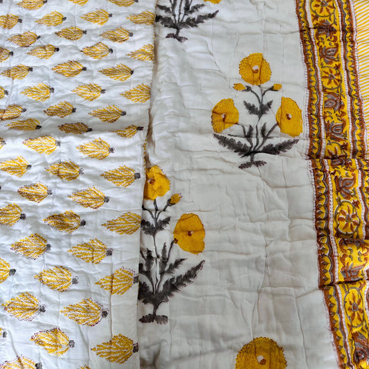 Sunflower Delight Reversible Single Bed Cotton Quilt