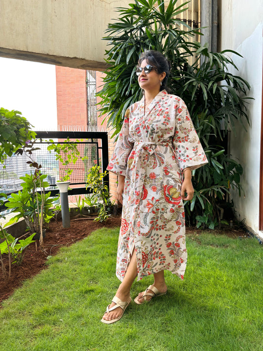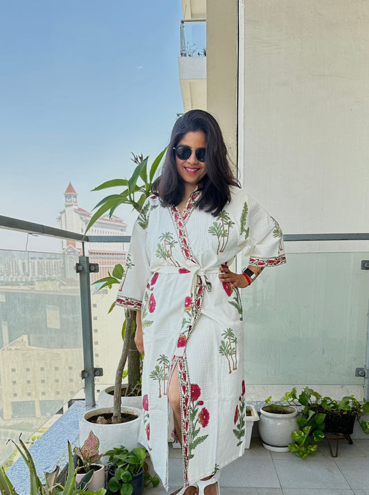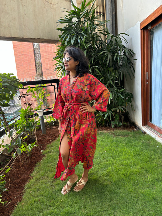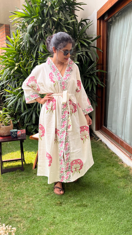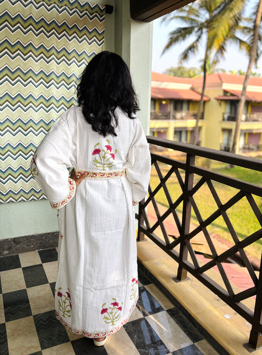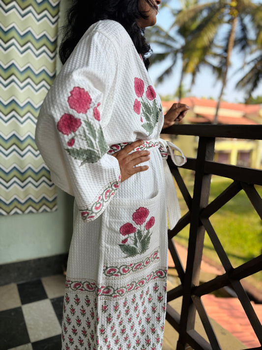 Harmony Blossom Red & Blue Waffle Cotton Bathrobe