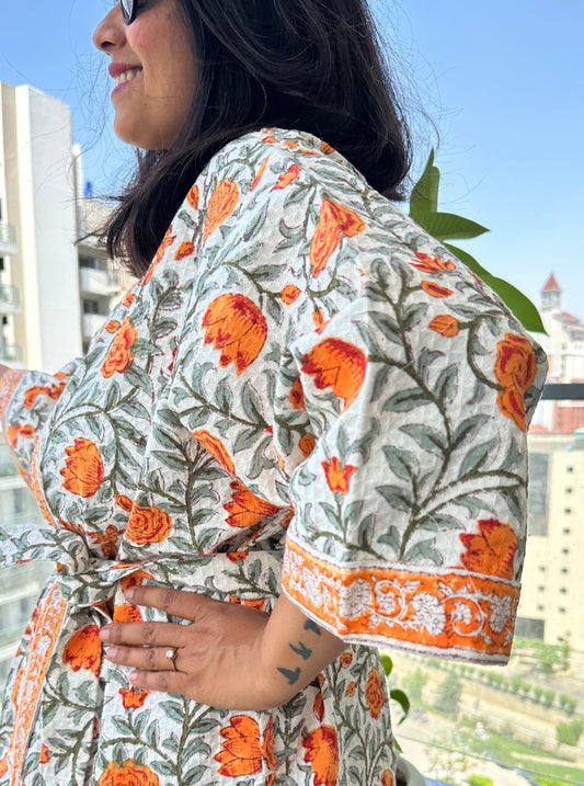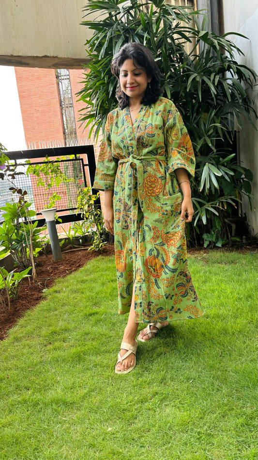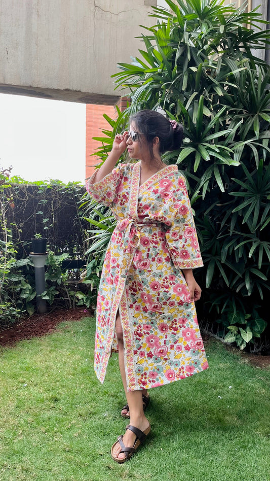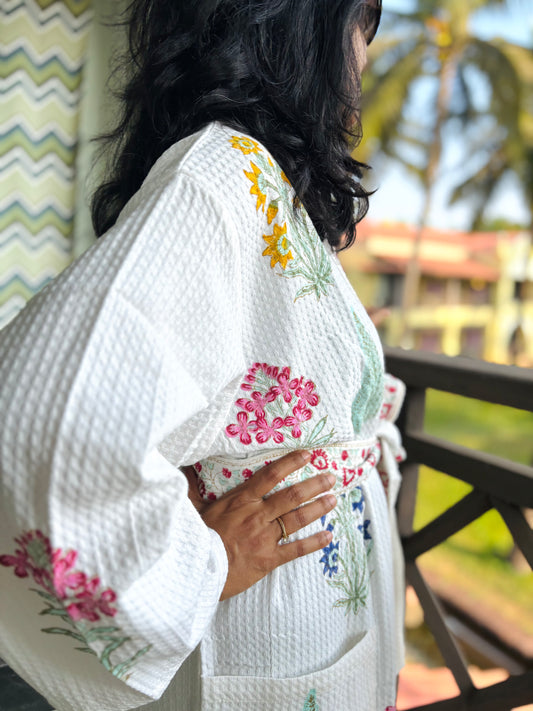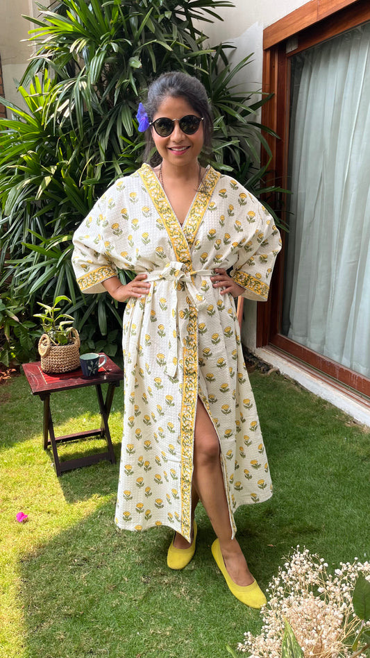 Yellow Floral Luxury Waffle Cotton Bathrobe