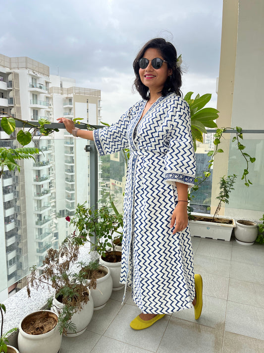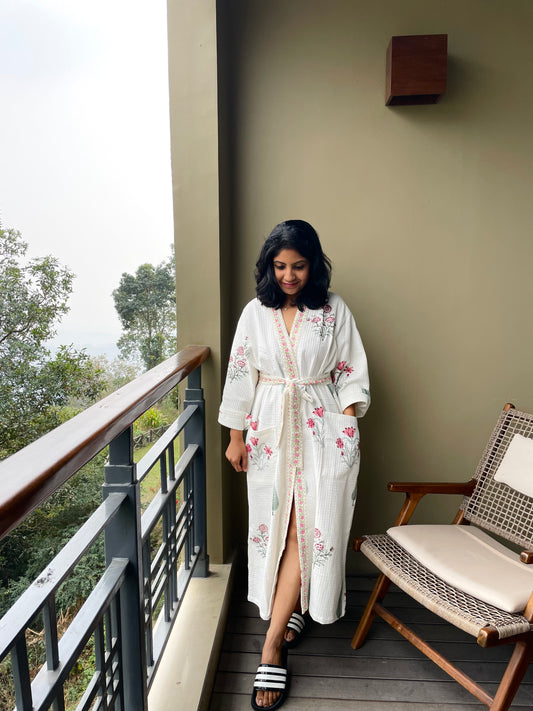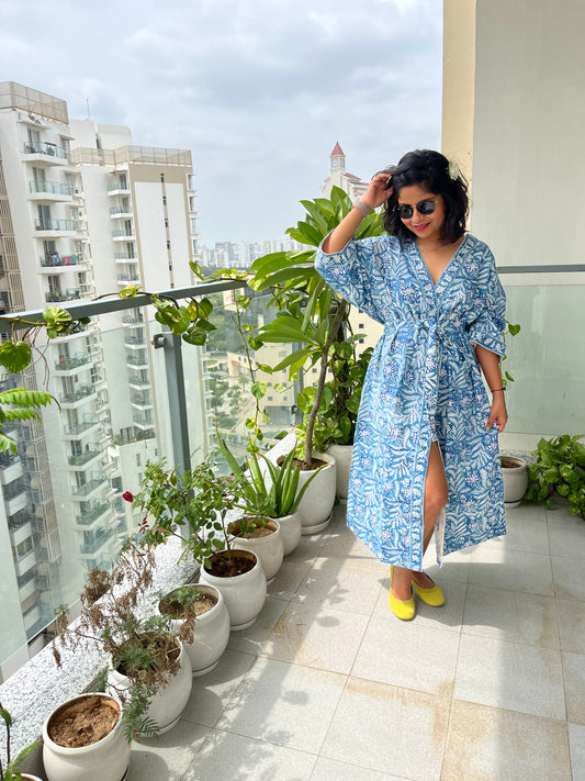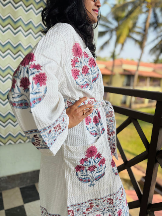 Blue Bliss Floral Waffle Cotton Bathrobe