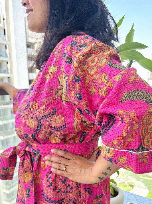 Fuchsia Pink Fantasy Waffle Cotton Bathrobe